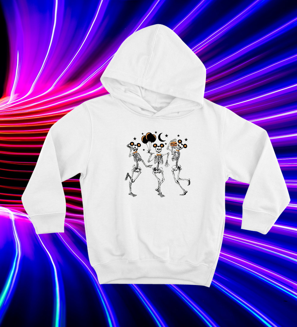 We use newest DTG Technology to print on to Disney Mickey Skeleton Dancing Halloween Hoodie