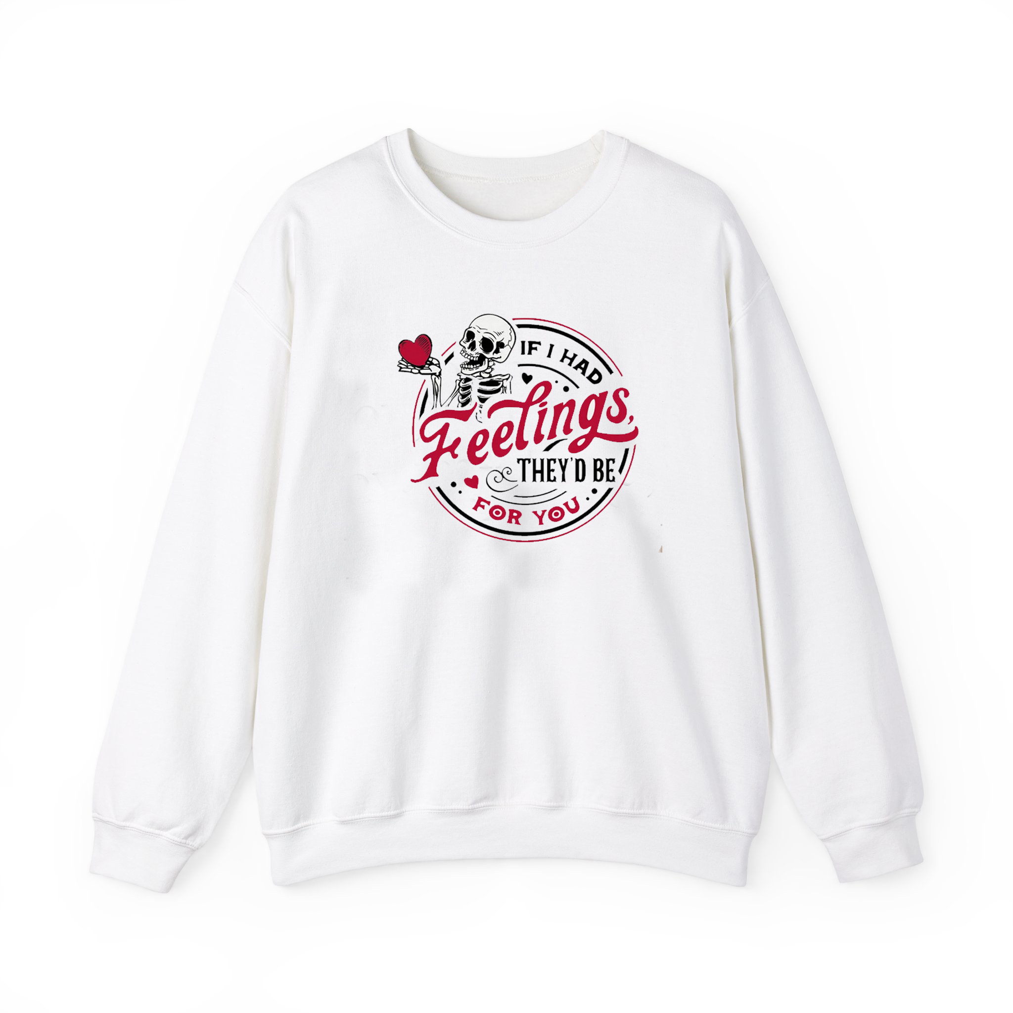 We use DTG Technology to print on to If I Had Feelings Skeleton Valentines Sweatshirt.