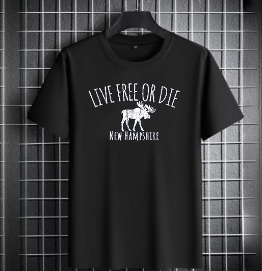 We use newest DTG Technology to print on to Live Free Or Die New Hampshire Tshirt.