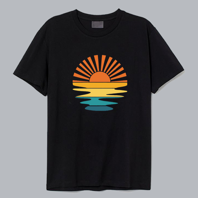We use newest DTG Technology to print on to Retro Sunset Rays Wavy T Shirt.