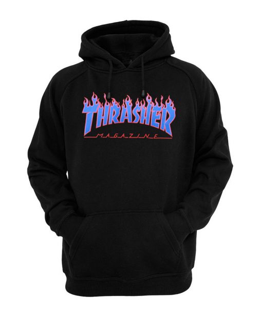 We use newest DTG Technology to print on to Thrasher Blue Flames Hoodie